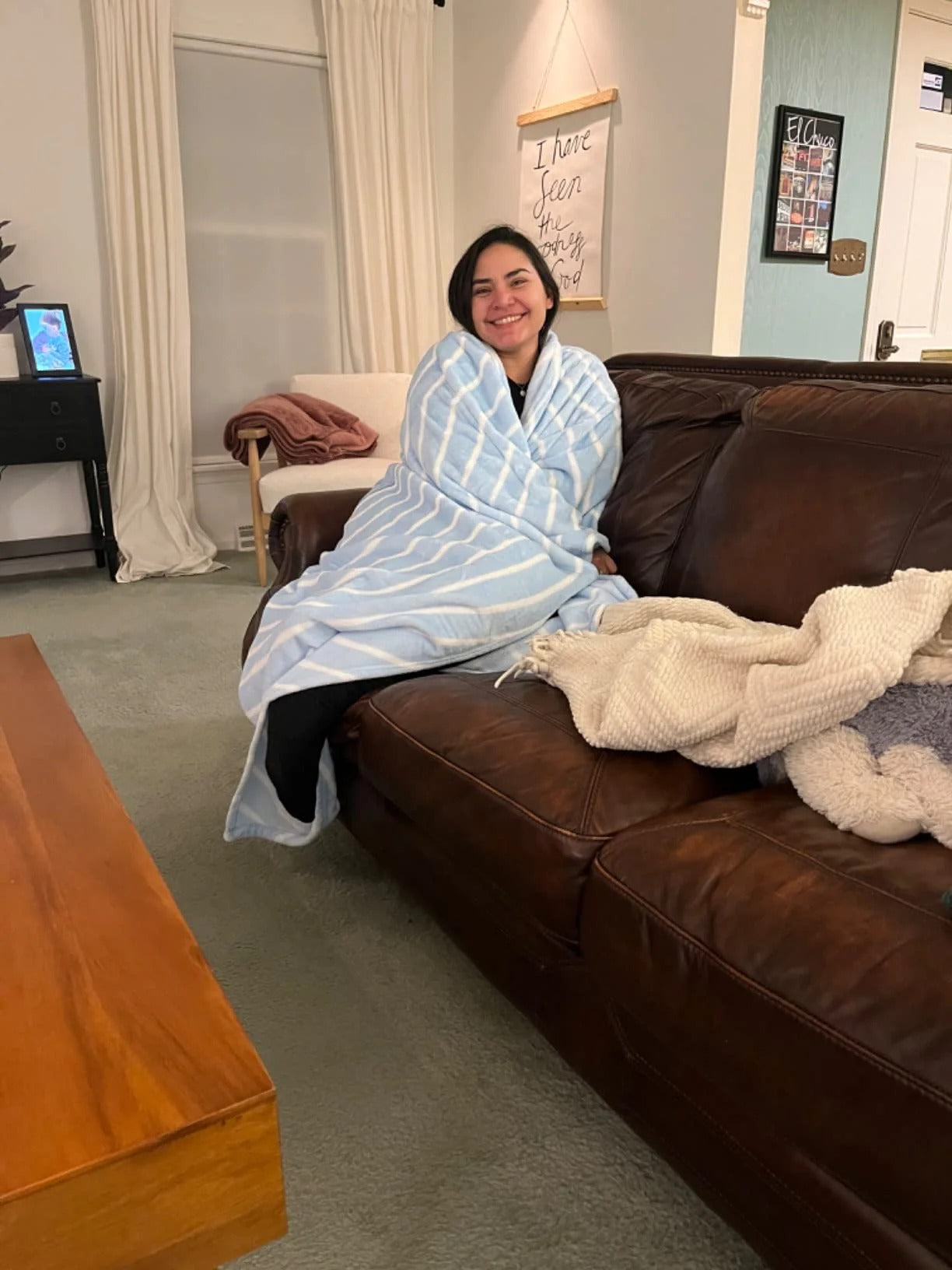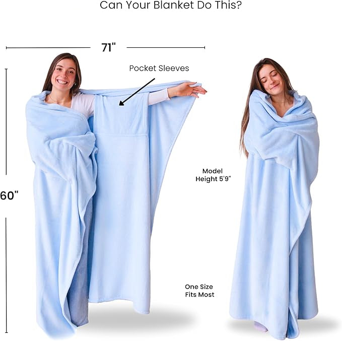 Our blanket is one-size-fits-all and designed to keep even taller people fully covered and cozy.
